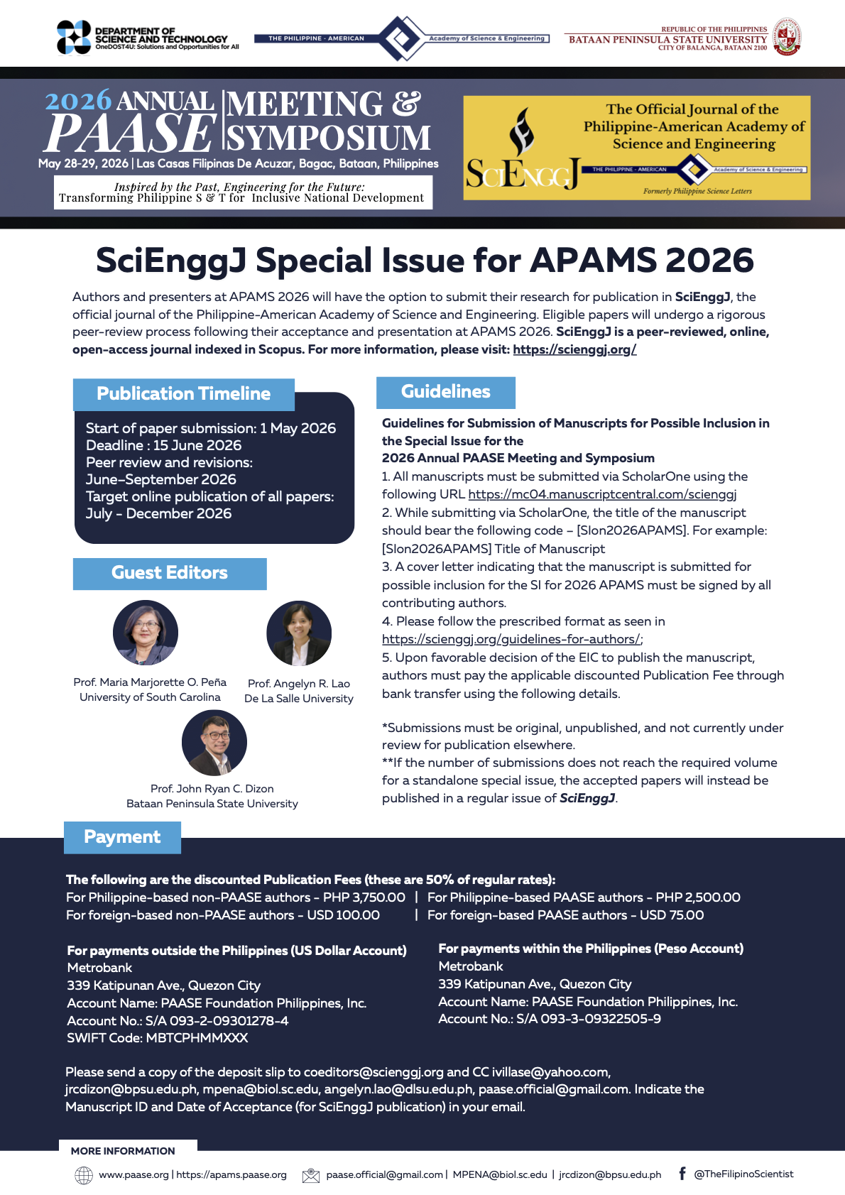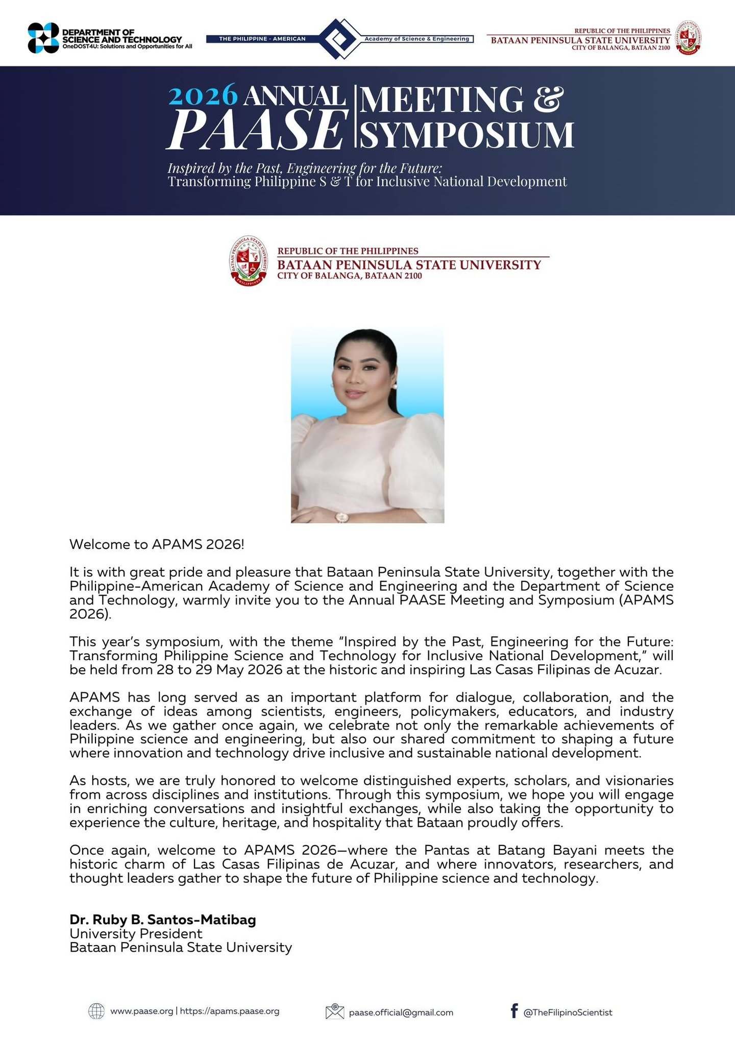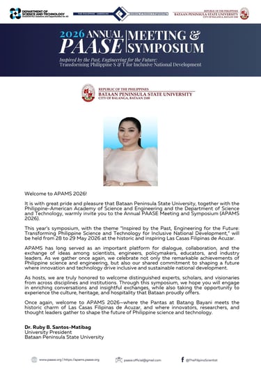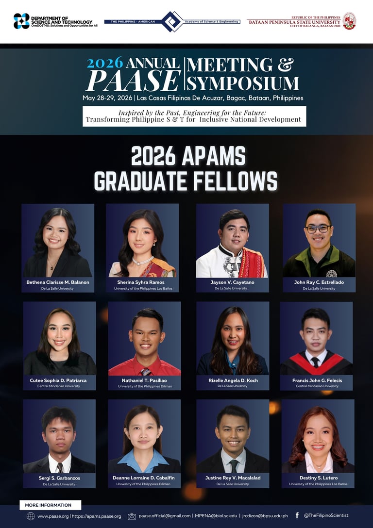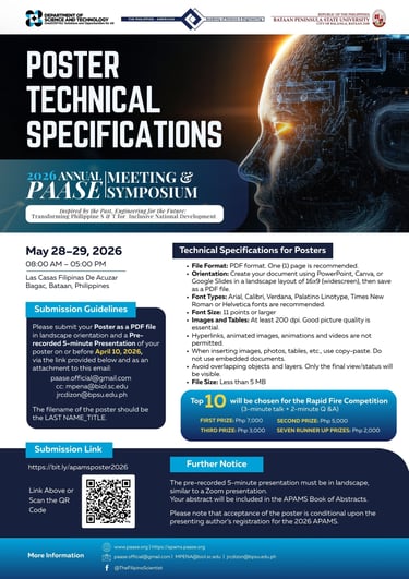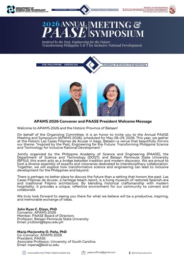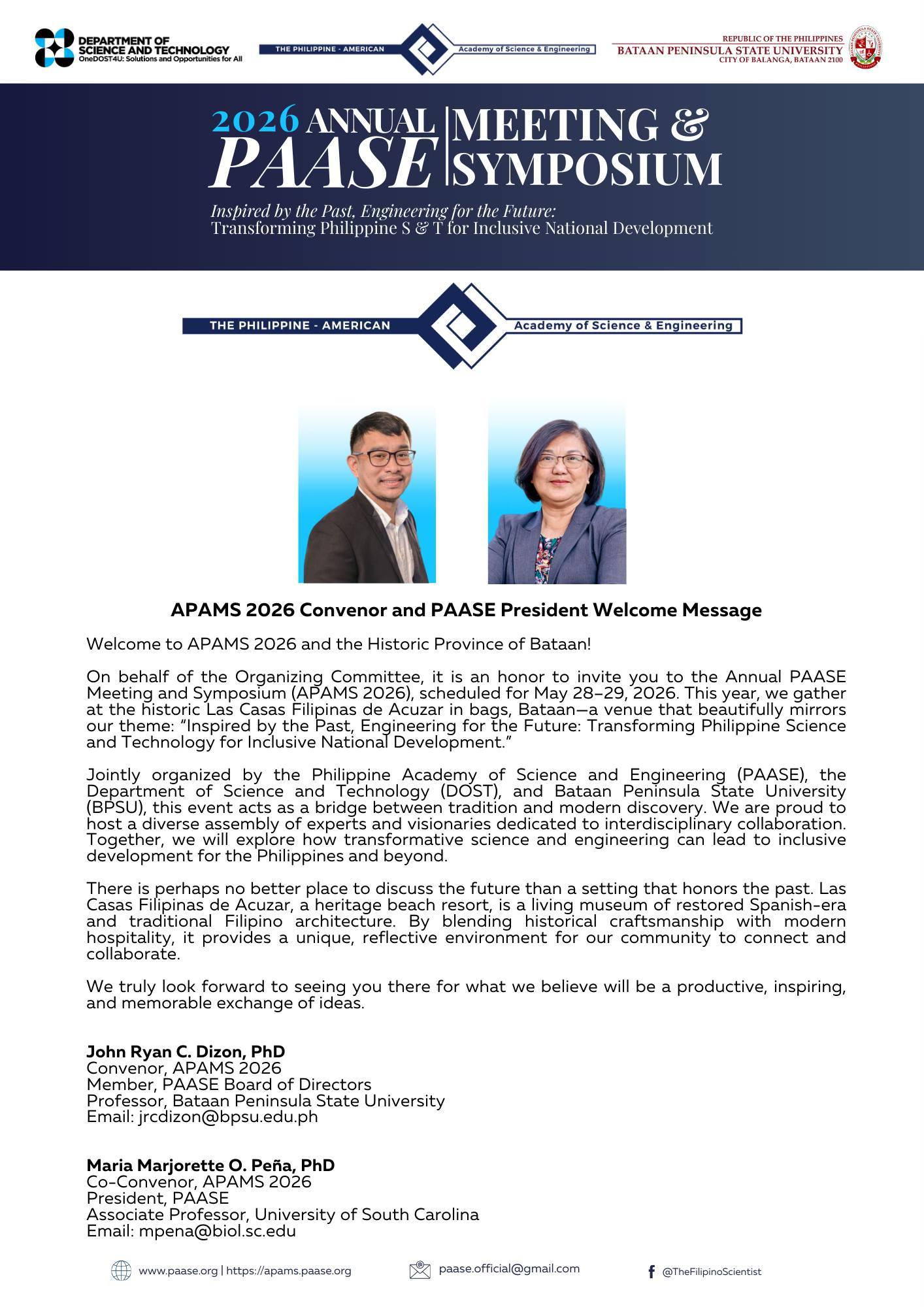 We are thrilled to announce the 2026 Annual PAASE Meeting & Symposium (APAMS), hosted in collaboration with the Department of Science and Technology (DOST) and the Bataan Peninsula State University (BPSU).