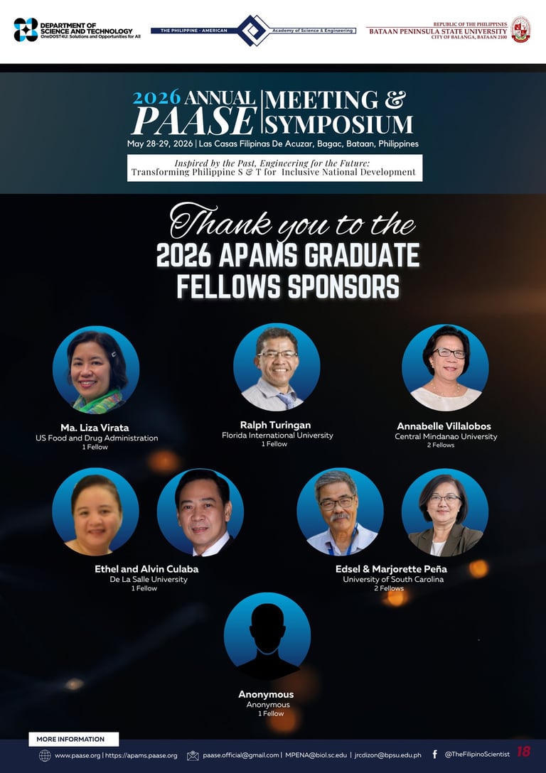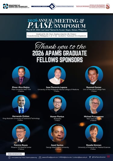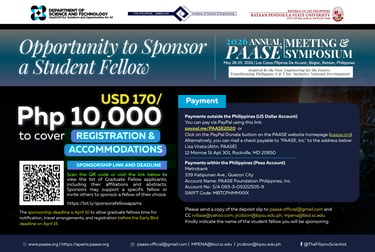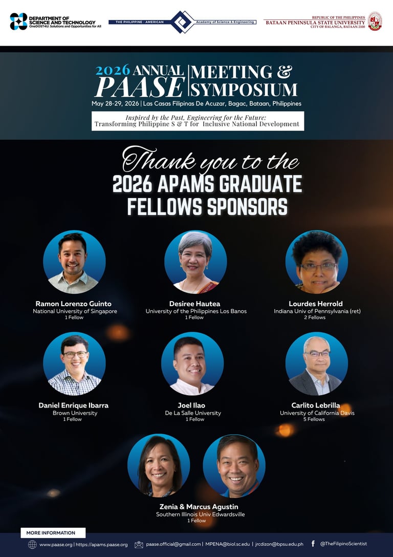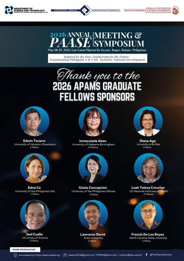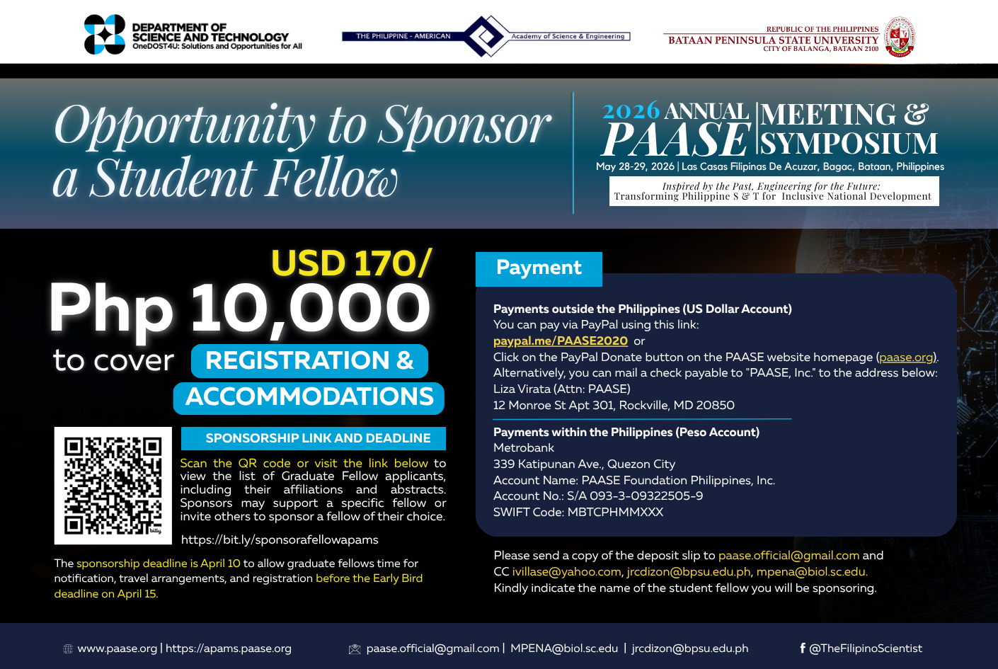 We invite you to support the next generation of Filipino scientists by sponsoring a Student Fellow for the 2026 Annual PAASE Meeting and Symposium (APAMS).